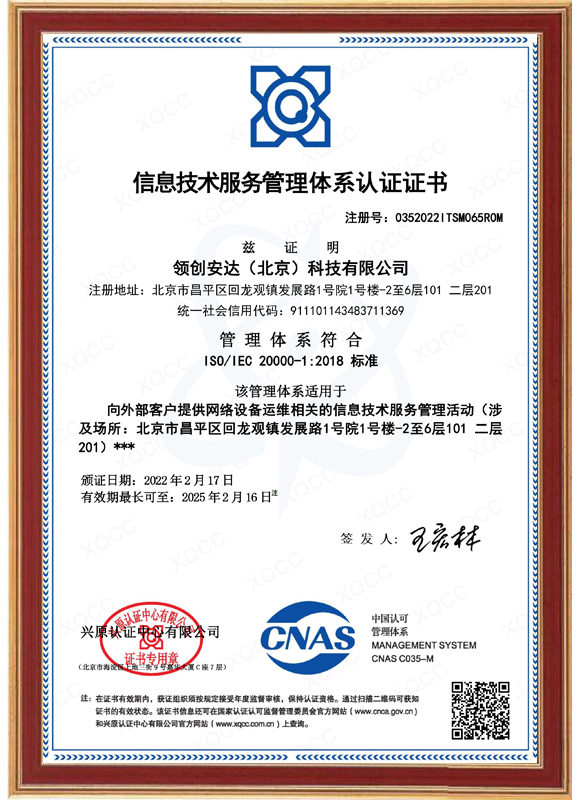 信息技術(shù)服務(wù)管理體系認(rèn)證證書